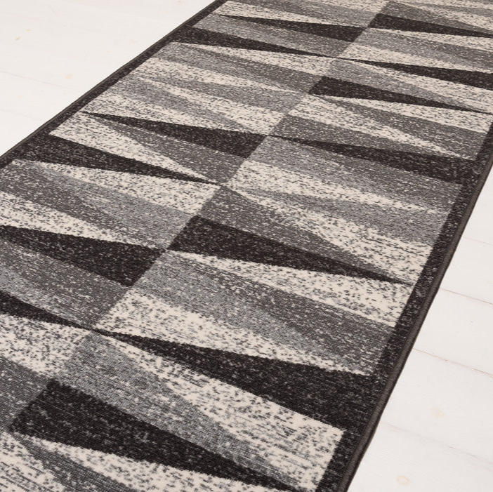 GÄngmatta i elegant mönster. Den Àr gjord av slitstark nylon och har en gummiundersida för att ligga stadigt pÄ golvet.