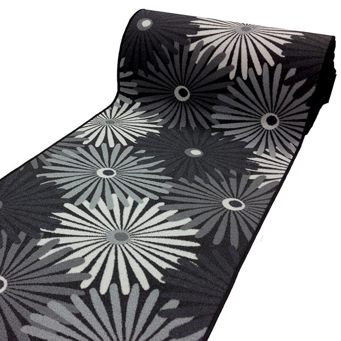 Solhjul Àr en modern gÄngmatta i lÀcker design. Den Àr gjord av slitstark nylon och har en gummiundersida för att ligga stadigt pÄ golvet.