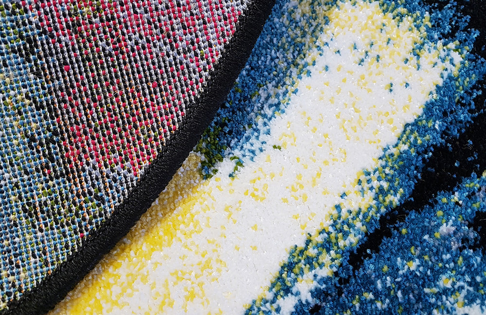 LÄt fÀrgerna ta plats med denna uttrycksfulla matta. Det dynamiska mönstret skapar en levande och energirik kÀnsla i hemmet. Mattan blir som ett konstverk pÄ golvet, perfekt för dig som vill ge rummet karaktÀr och personlighet.