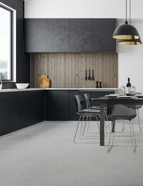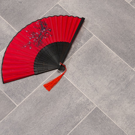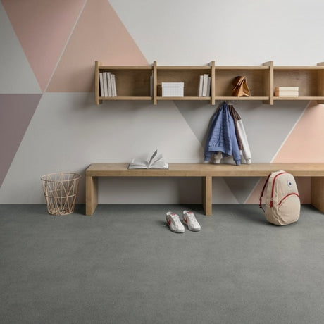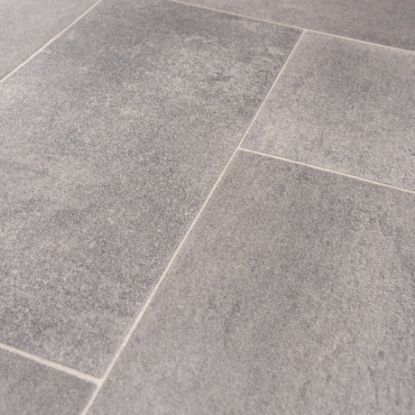 Vinylgolv i grÄ/svart klinker. 300 cm bredd.