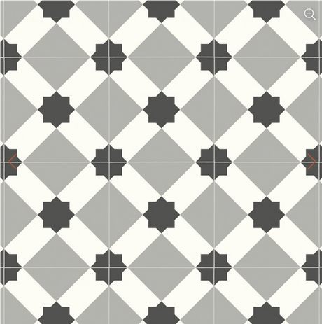 Vinylgolv i populÀr svart/vit rutdesign. 300 cm bredd.