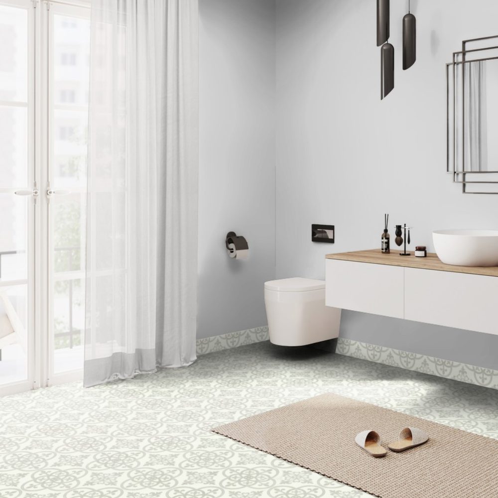 Denna vÄtrumsmatta kombinerar slitstyrka med mjuk komfort, perfekt för badrum dÀr bÄde funktion och kÀnsla spelar roll. Den behagliga ytan ger en varm kÀnsla och mattan uppfyller branschens krav pÄ vattentÀthet med bred marginal.