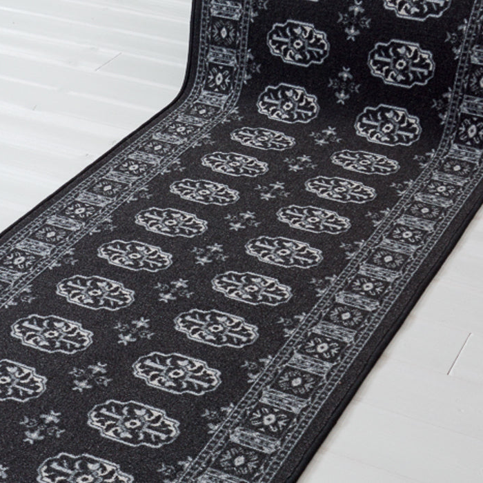 Bokhara Àr en klassisk gÄngmatta i lÀcker design. Mattan Àr gjord av slitstark nylon. Den har en gummerad undersida för att ligga stabilt pÄ golvet och inte glida runt.