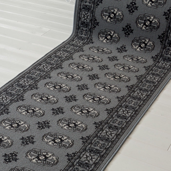 Bokhara Àr en klassisk gÄngmatta i lÀcker design. Mattan Àr gjord av slitstark nylon. Den har en gummerad undersida för att ligga stabilt pÄ golvet och inte glida runt.