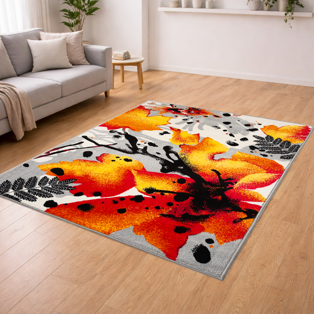 Ge rummet energi och personlighet med denna fÀrgstarka matta som verkligen tar plats i inredningen. Det konstnÀrliga mönstret kombinerar djupa röda, orange och gula toner med grafiska kontraster som skapar ett levande och dynamiskt uttryck. En matta som fungerar som ett tydligt blickfÄng och ger rummet karaktÀr och vÀrme.